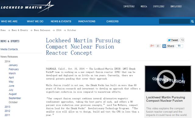 该项目负责人Tom McGuire和他的团队在洛克希德·马丁旗下著名的“臭鼬工厂”为这个秘密能源项目已经工作了四年,现在公开寻找业内或政府领域的潜在合作伙伴。
